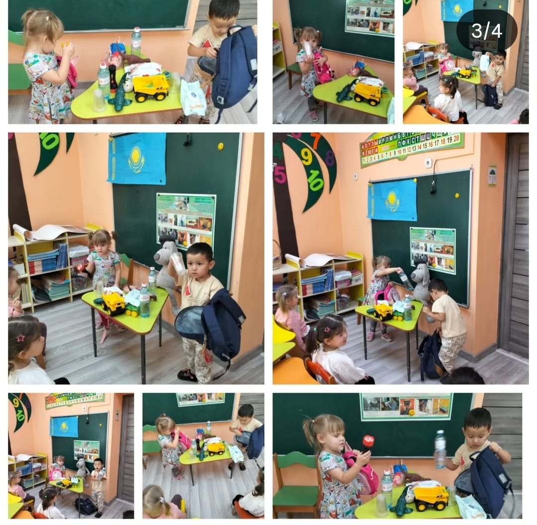 18 сентябрь 2025 0 1 2 3 4 5 Ересек «Ақбота» тобы. Ұйымдастырылған іс-әрекеты/Организованная деятельность: ЧС Тема: "Собираем тревожный рюкзачок"Цель: Умение собирать тревожный рюкзачок необходимыми предметами- вода, свисток, фонарик, влажные салфетки и т.д.